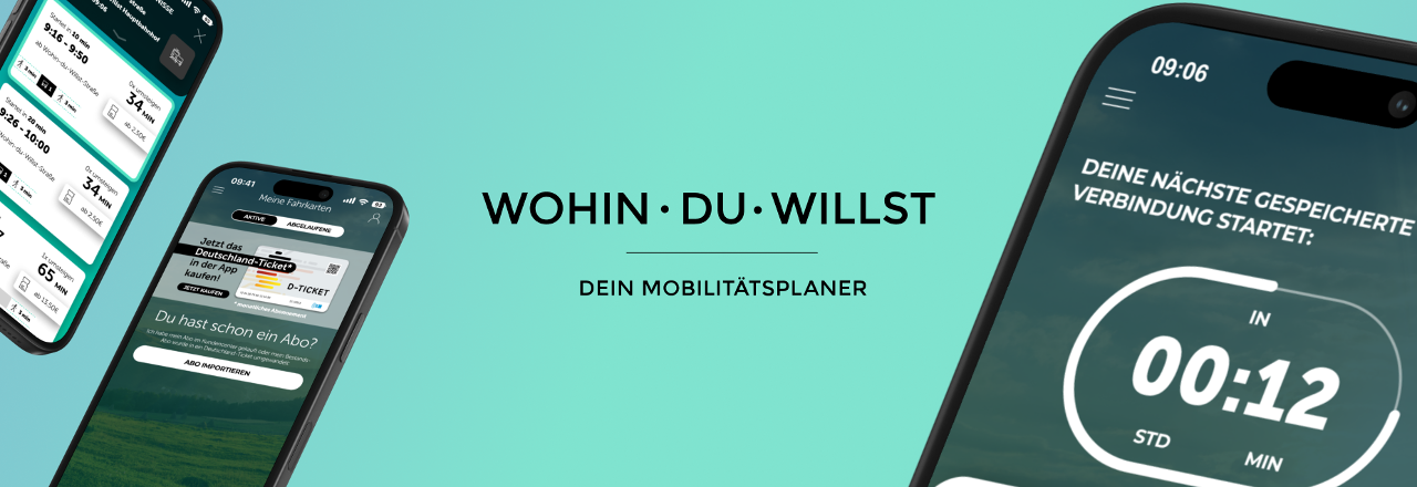 Die App zeigt dir alle Verbindungen für Bus und Bahn - vom ICE bis zur U-Bahn - an. In Gegenden mit Rufbusangeboten oder Mitfahrgelegenheiten werden dir auch diese angezeigt.